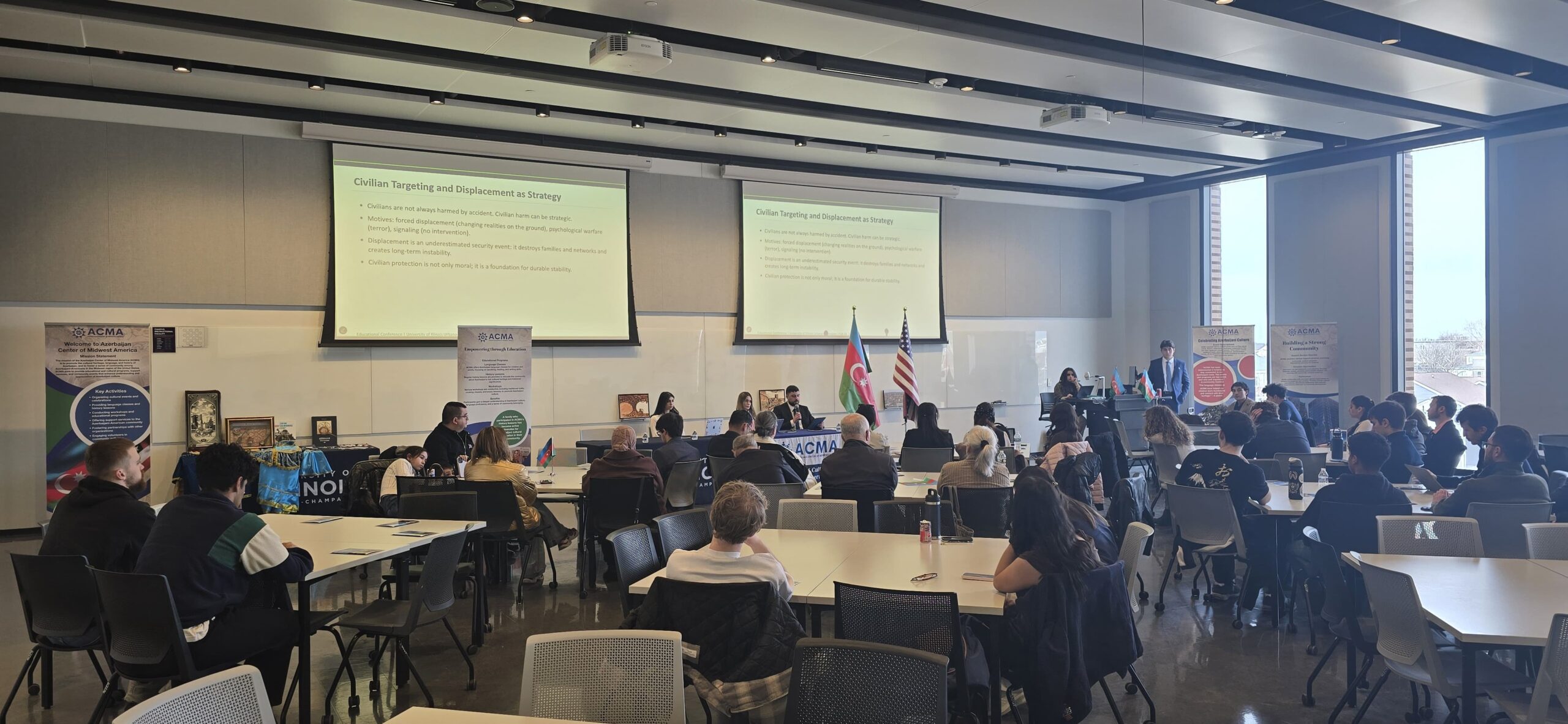 The conference was organized by the Azerbaijani Student Association at the University of Illinois Urbana-Champaign with the support of the Azerbaijan Center of Midwest America (ACMA) and the State Committee on Work with Diaspora of the Republic of Azerbaijan.